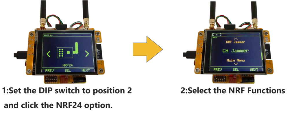 • Select the NRF functions (such as Spectrum, NRF Jammer, or CH Jammer) as needed.