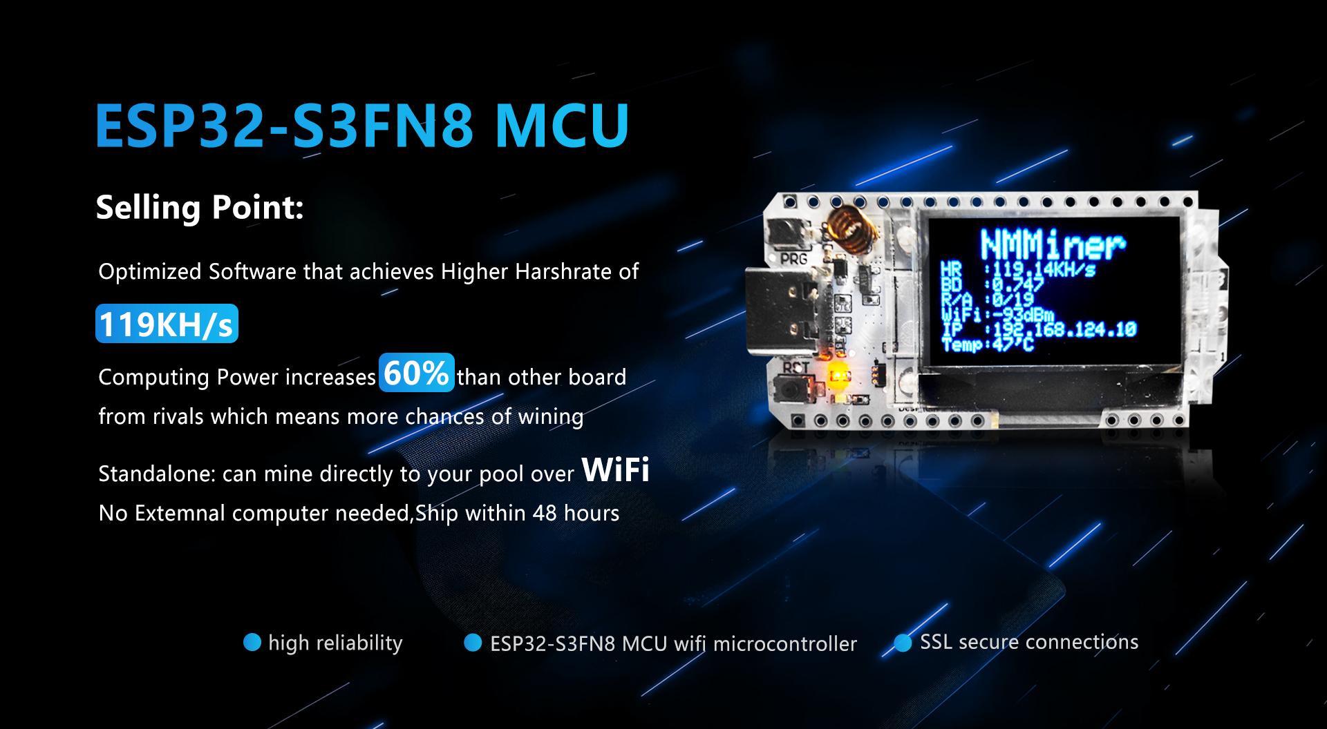 - Deeply optimization for ESP32-S3, max hash rate: 119 KH/s